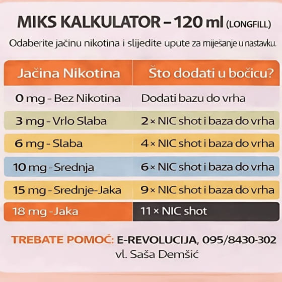 Na slici broj 2. ili u opisu proizvoda dolje možete naći naše upute kako da dobijete traženu jačinu nikotina.